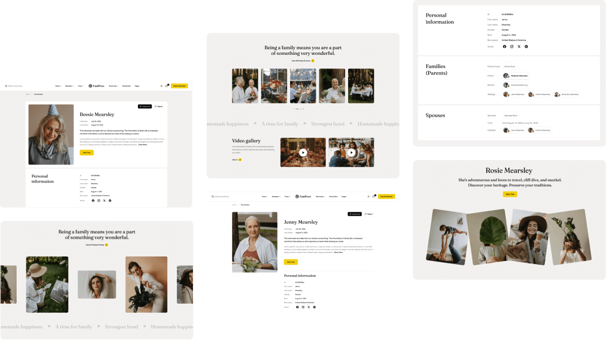 With our theme you can create unlimited members & families to show your family history, tree,...